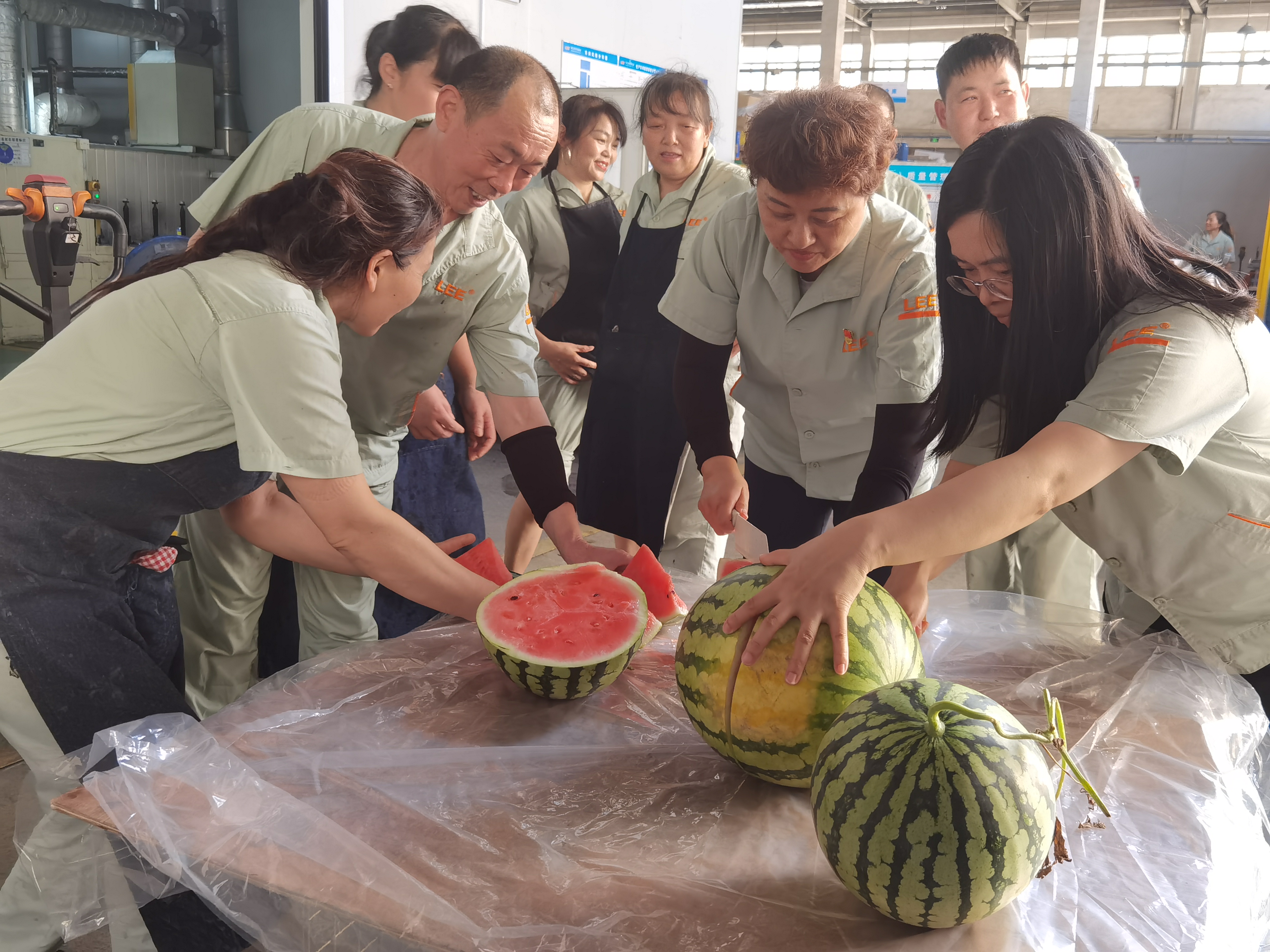 7月16日,集團黨支部、工會和各中心組織開展集團夏日送清涼活動予以輔助配合各公司防暑降溫計劃的落實。活動現場歡聲笑語,秩序井然。一塊塊清涼消暑的西瓜,讓大家涼在口里,甜到心里。