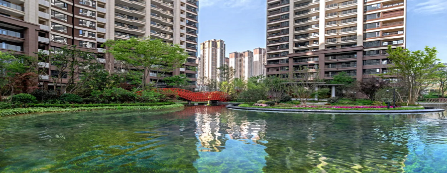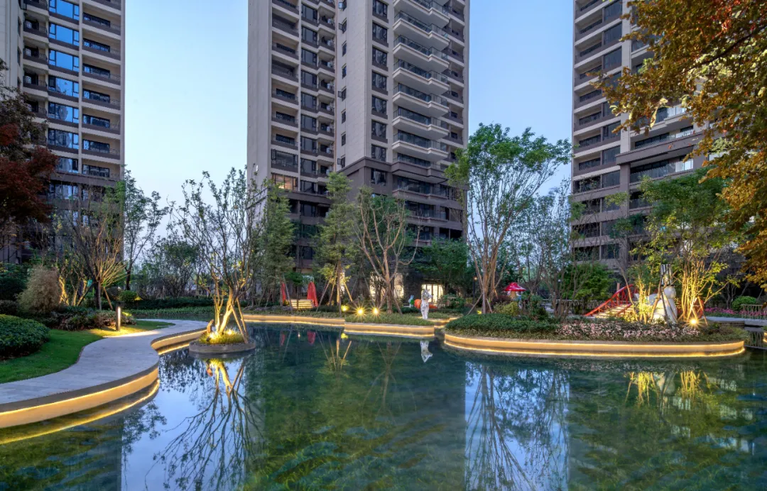 一池水,一片海,它是我們心中美好的水岸島居生活的一個真實(shí)夢境。設(shè)計師以現(xiàn)代的手法構(gòu)圖溪岸,融合泛會所、溪流、湖心島等原生態(tài)水岸景觀,再現(xiàn)“岸梅溪春又生”的自然時尚居所,給人以森林般的水岸島居體驗(yàn),展現(xiàn)島居住宅和諧精緻之美。