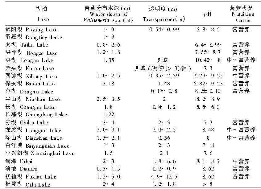 苦草分布湖泊的水質(zhì)狀況