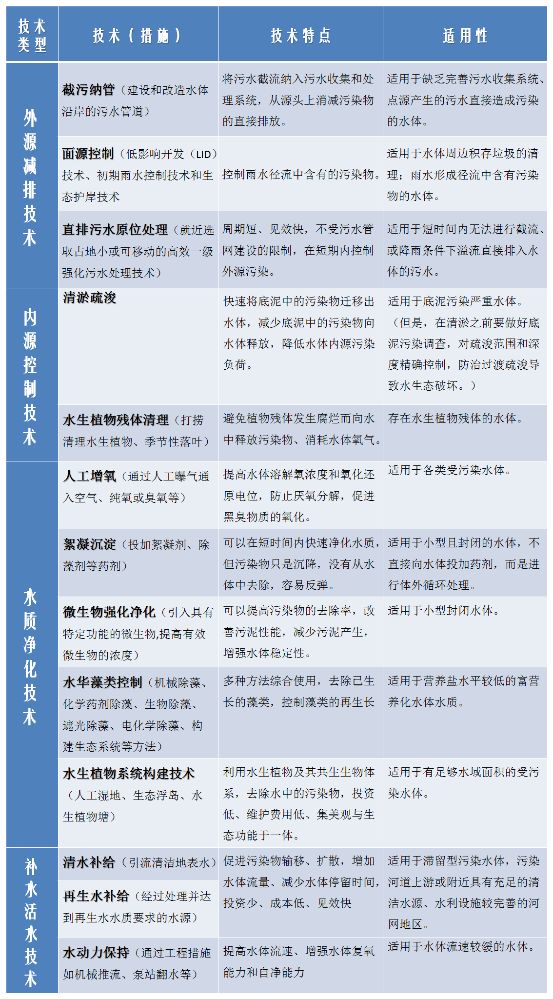 不同的治理技術具有不同的特點和使用范圍,沒有“萬能型”的技術,需要根據水體污染的程度、污染的原因和治理階段的不同,優先選擇適用技術,而不是所謂的“新”技術?,F在,就讓我們來看一看怎么對癥下藥吧!
